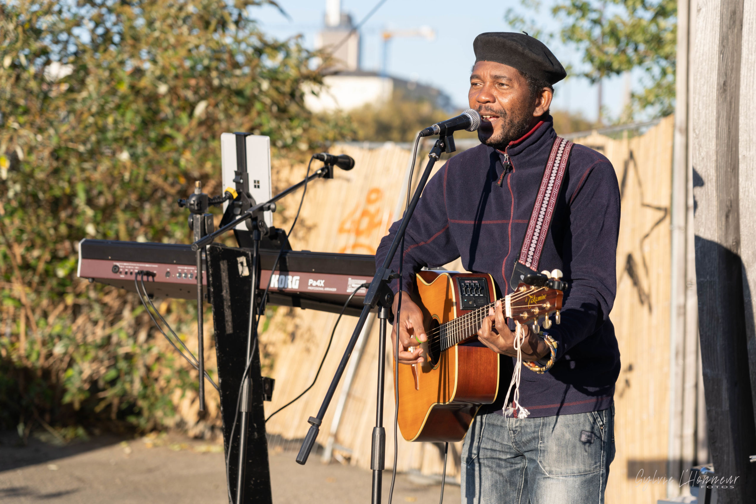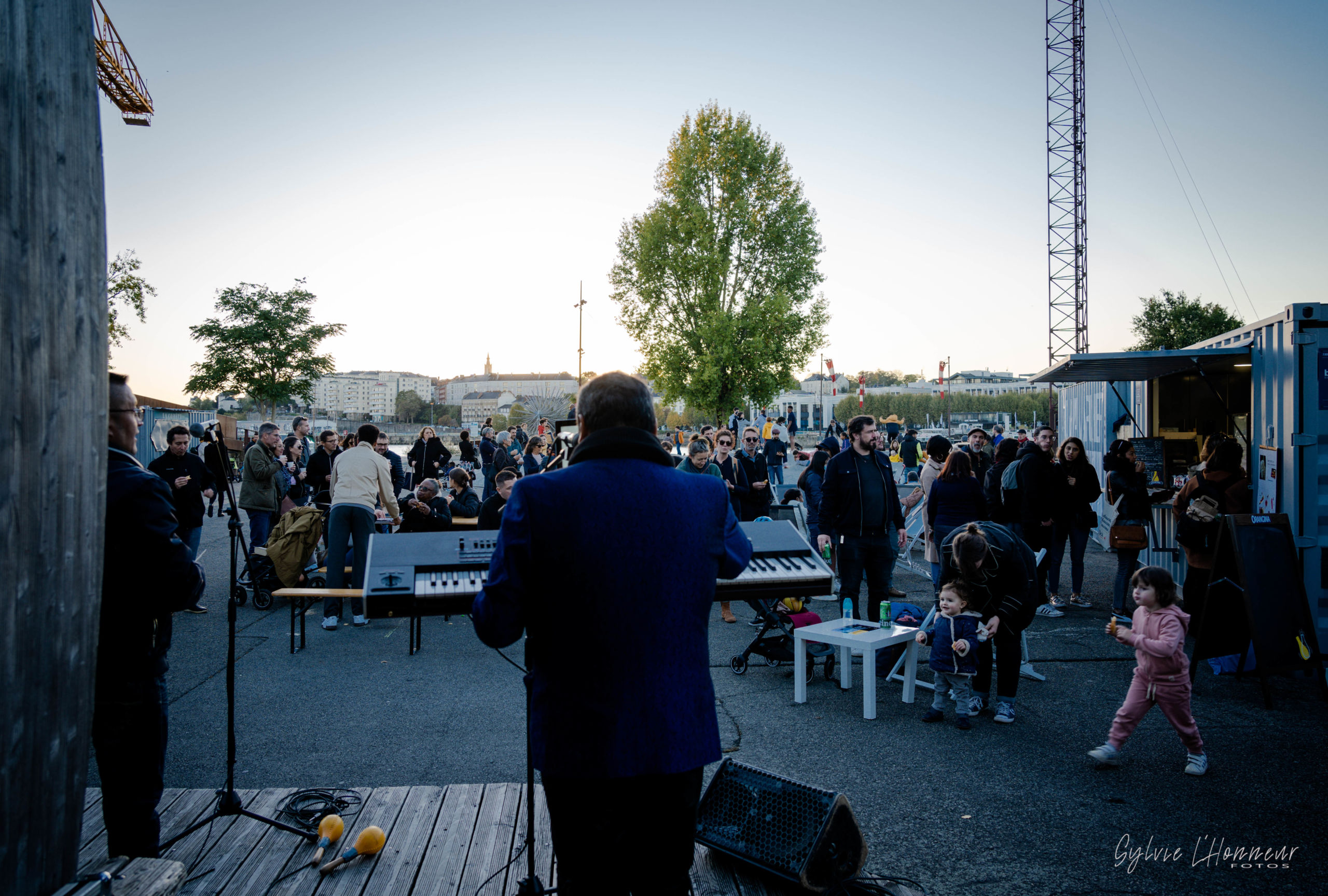 Samedi 23 octobre, le soleil et le public étaient au rendez-vous pour l’apéro musical organisé par la Coque Nomade Fraternité devant le Pavillon de la Fraternité sur l’île de Nantes.