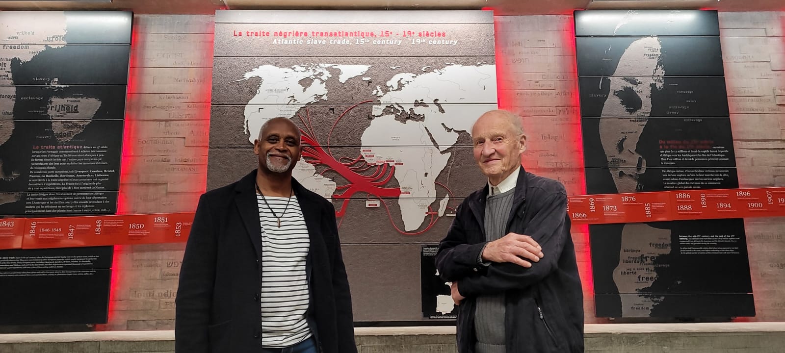 Lors de son épisode consacré à Nantes, vous pourrez entendre les témoignages de Pierre et Dieudonné qui sont engagés au sein de l’association Coque Nomade Fraternité. Pierre est descendant d’armateur négrier nantais et Dieudonné de personnes mises en esclavage, ensemble ils brisent le silence et agissent toute l’année au sein de l’association pour une mémoire apaisée et une justice réparatrice. Ils proposent des visites du Mémorial de l’abolition de l’esclavage de Nantes à deux voix et organisent et prennent la parole lors des différents évènements de l’association comme les tables-rondes des descendants et les symposiums sur les impacts de l’esclavage et la justice réparatrice. En avril 2026, c’est un grand projet de l’association qui verra le jour porté grâce aux bénévoles : le Mât de la Fraternité et de la Mémoire. ce monument symbole des luttes contre les discriminations serra inauguré sur le port de Nantes avant un déploiement dans différentes villes du Monde.