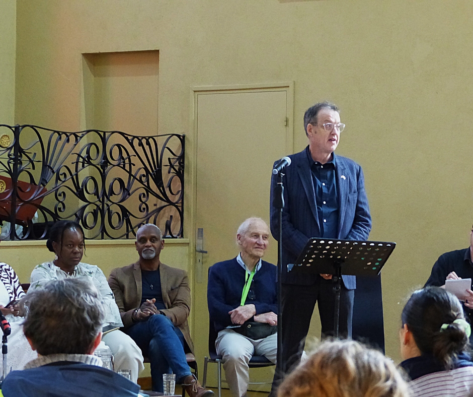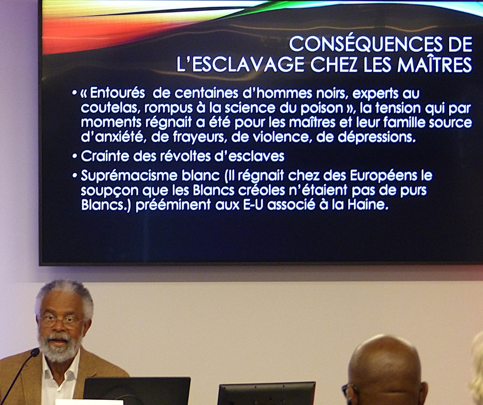 Merci à tous les intervenants pour leur participation, leur engagement et leur sincérité : Aimé Charles-Nicolas professeur psychiatre martiniquais, Priscellia Robinson avocate en droit international, Jacqueline McKenzie, avocate spécialisée dans les droits de l’homme, John Dower, descendant d’une famille de planteurs esclavagistes à la Grenade, Catarina Demony, descendante d’une des plus grandes familles d’esclavagistes en Angola, Marveen Rees, ancien maire de Bristol (vidéo), Asher Craig, community activist, consultante et ancienne conseillère, membre du cabinet et maire adjointe de Bristol, Marie-Annick Gournet, professeur of Lifelong Learning and Inclusive Pedagogy à l’Université de Bristol, Gabriela Ramos, ancienne sous-directrice générale pour les sciences sociales et humaines, Linda Tinio-Le Douarin, Deputy Chief Inclusion, Rights and Intercultural Dialogue Section Social and Human Sciences Sector de l’UNESCO, Bruno Maillard, historien et professeur à l’Université de Créteil, Dr Erica Mapule McInnis psychologue clinicienne, Robert Beckford, professeur de justice sociale, Jean-François Manicom, conservateur du London Museum Docklands, Désirée Baptiste, écrivaine et chercheuse interdisciplinaire, Dennis Lloyd, Egypt Lloyd et Naomi Gordon Enslaved Legacy History Coalition (video), Dieudonné Boutrin, descendant de personnes mises en esclavage en Martinique et Président de La Coque Nomade Fraternité, Pierre Guillon de Princé, bénévole de l’association Coque Nomade Fraternité et descendant d’armateur négrier nantais, et des représentants des églises protestante et catholique.