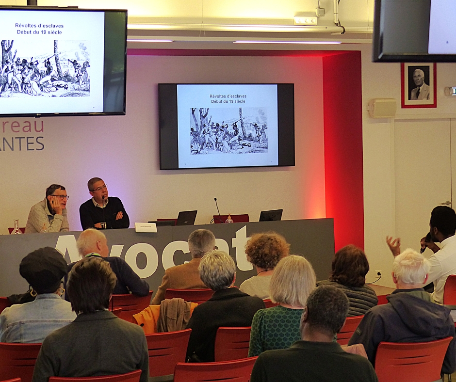 Au programme de cet évènement : 10 conférences, une table-ronde des descendants, une visite guidée sur les traces du passé négrier de Nantes et une exposition sur la traite négrière réalisée par des jeunes de banlieue parisienne qui étaient présents pour l’occasion. Les rencontres se sont déroulées dans des lieux d’accueil symboliques : la Maison des avocats de Nantes et le Temple protestant, partenaires engagés de l’évènement.