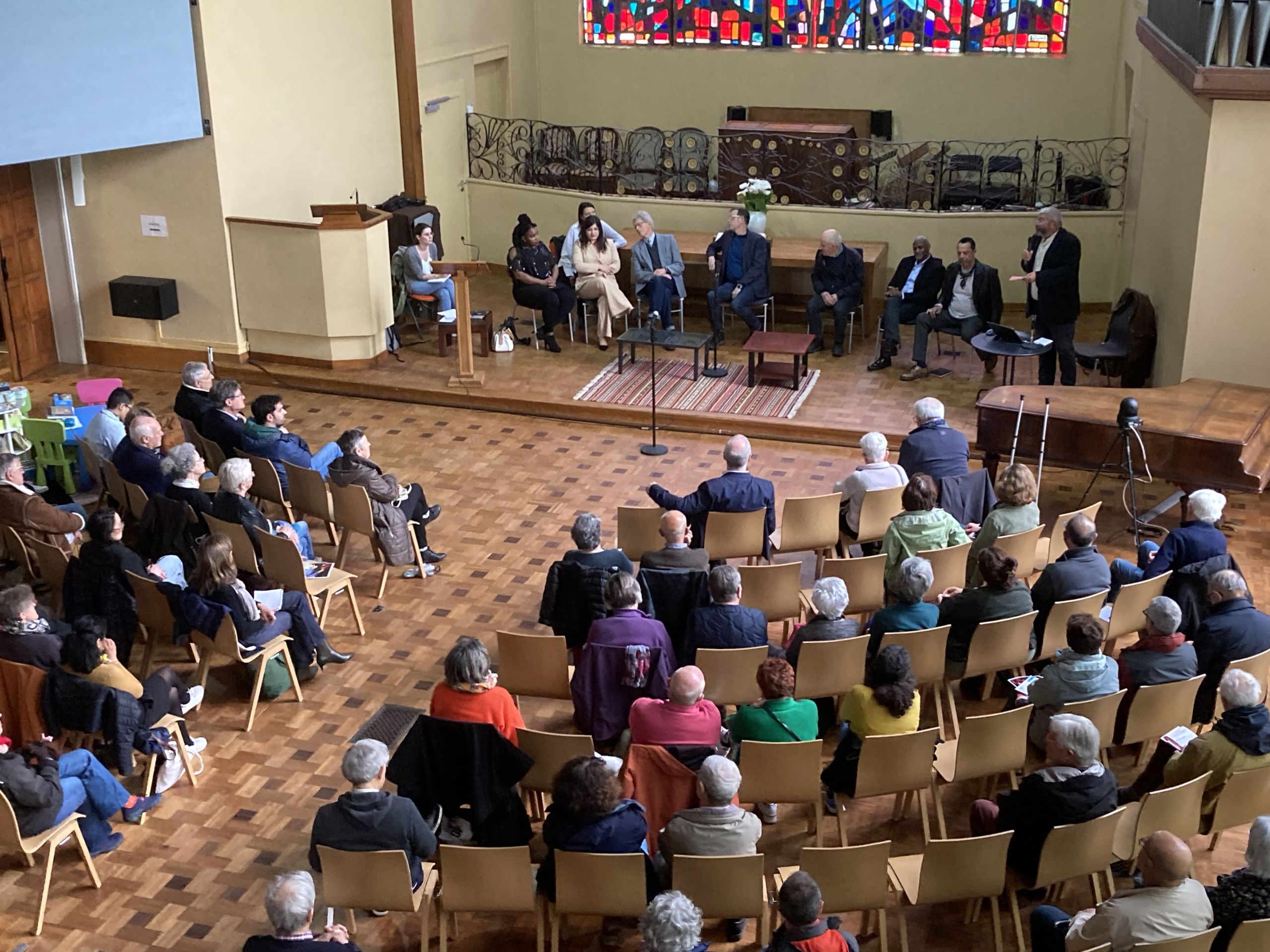 100 personnes dans le public pour la table-ronde « Paroles de descendants » avec des descendants français et britanniques d’esclavagistes et d’esclaves et des historiens. Au delà de leurs témoignages, les intervenants ont également pu aborder l’actualité de la recherche historique et le rôle des églises dans la traite et dans le mouvement abolitionniste.